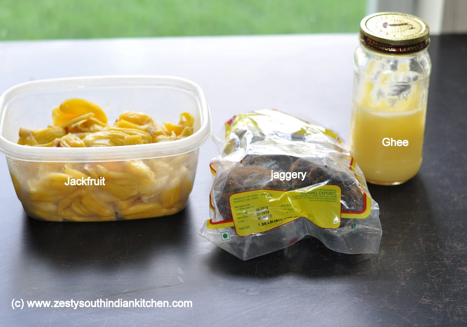 - Pressure cook jackfruit pulps till soft by adding ½ cup of water for about 3 whistles and set aside for cooling.Then grind it to a smooth paste in a blender into a fine paste.