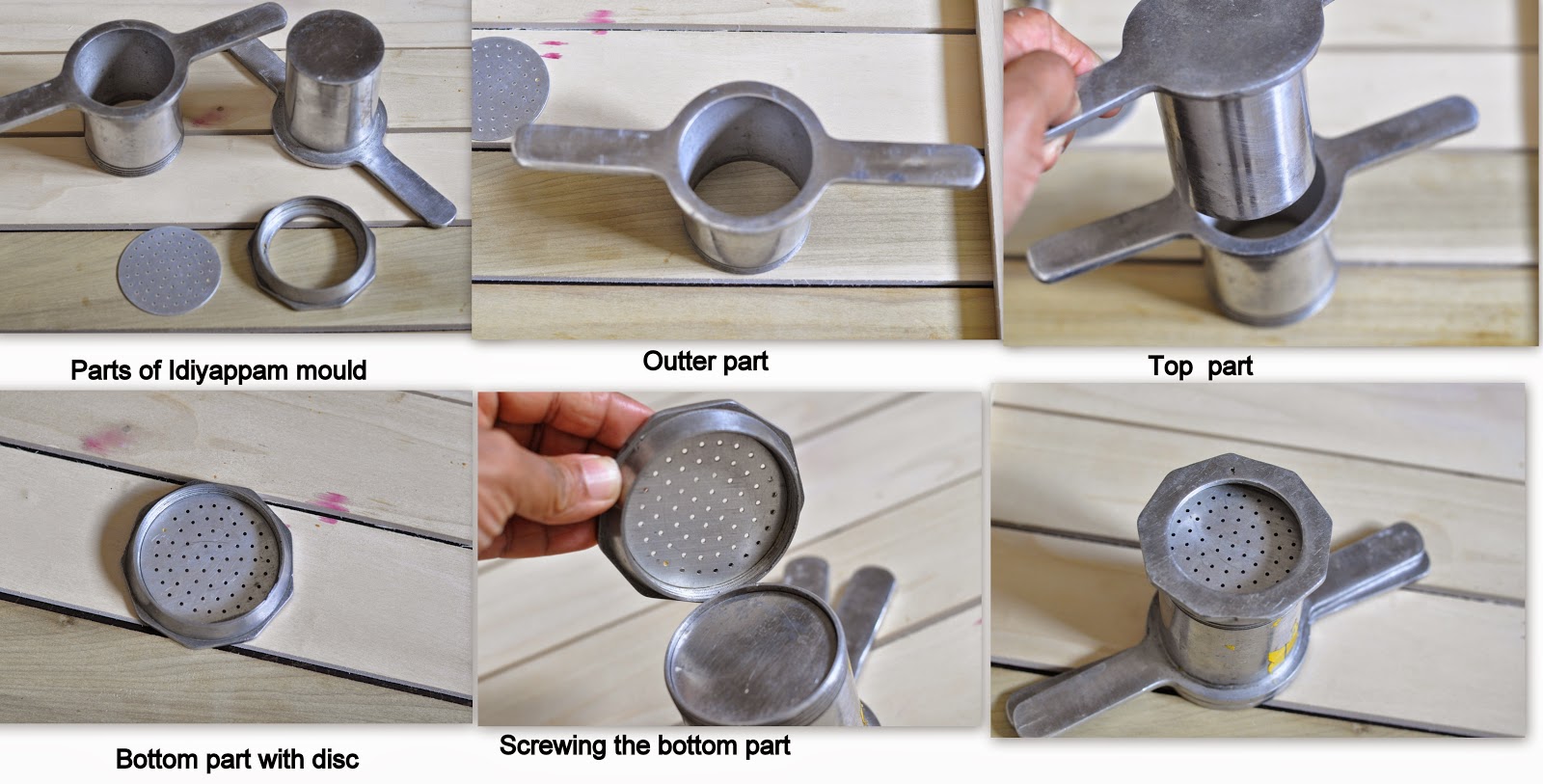 Idiyappam/Noolappam/Rice string Hoppers is one of the breakfast recipes which amma used to make during the weekend. It requires elaborate process of soaking the rice, and then pounding it in a powder, making dough and pressing the dough through the mould and finally cooking it in a steamer. She would make potato stew or ishtu to go with it. If you ask me I am lazy when it comes to make some dishes, while for some other dishes I will go all the way create them. My hubby says I am doing it for blog, maybe it is true to an extent.