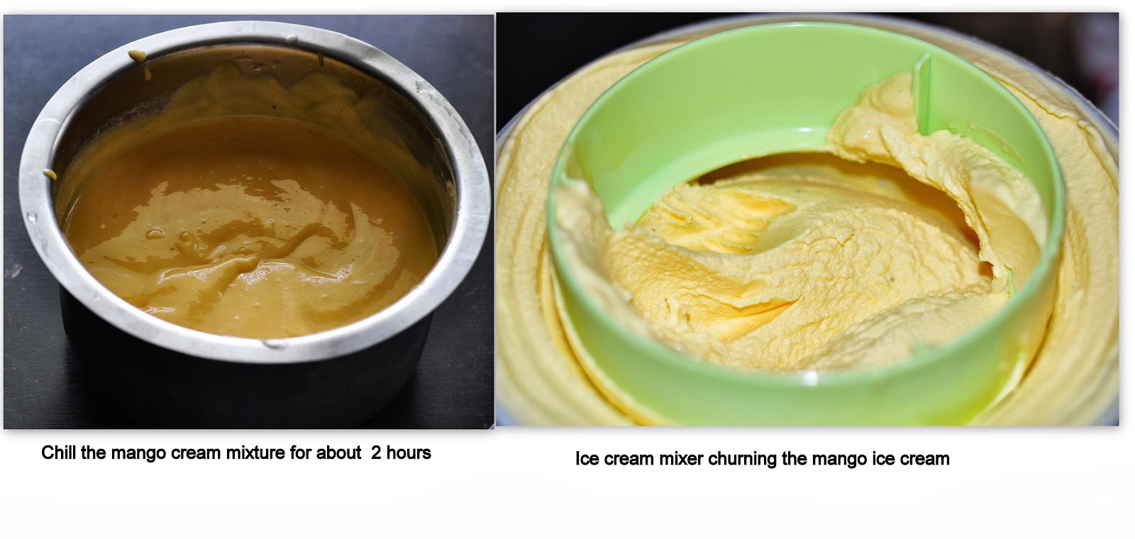 - Transfer the mango-milk cream mixture to ice cream maker and churn. Mix about 25-30 minutes or according to manufacturer's instructions.