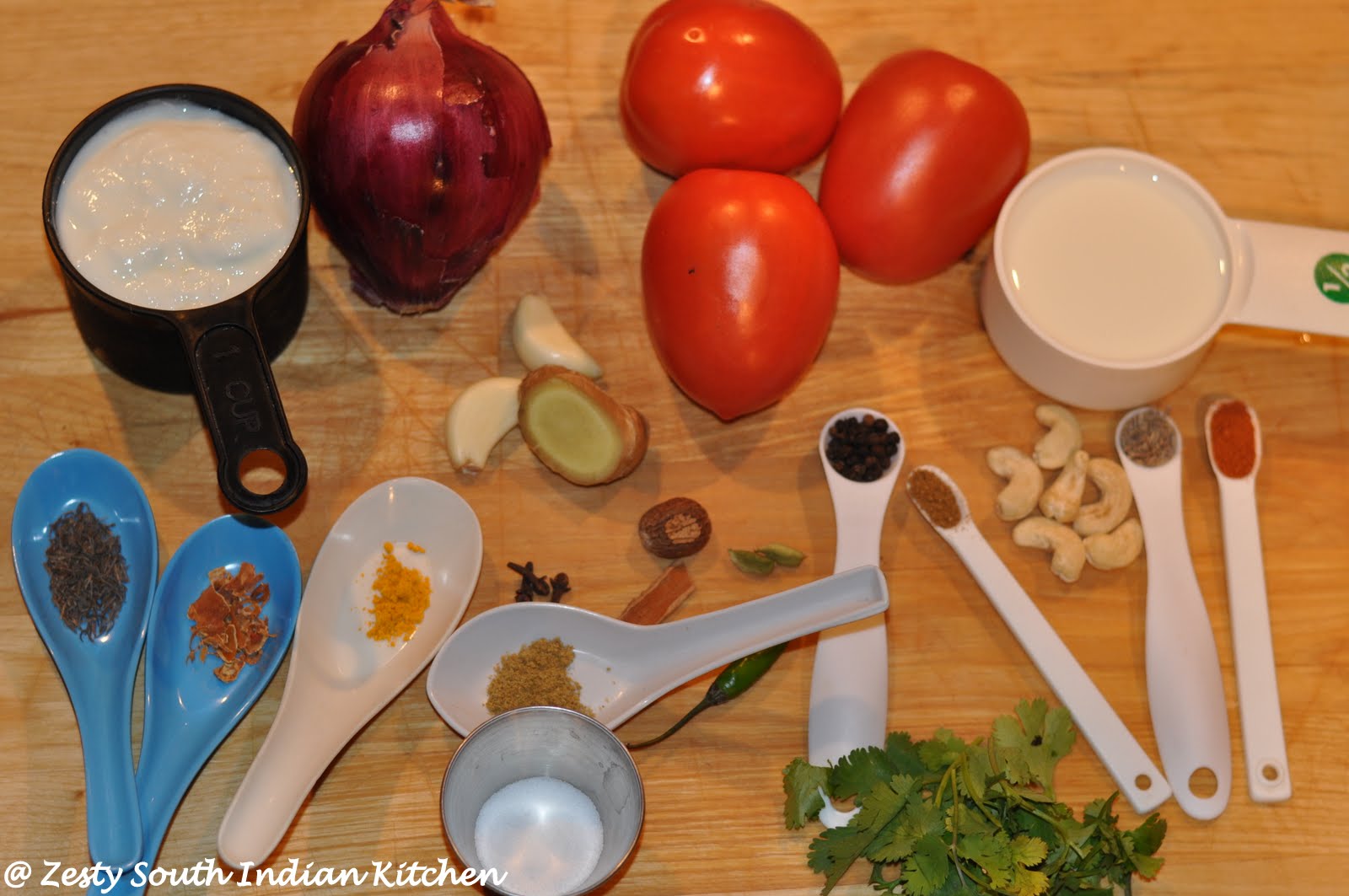 Grind cashew nuts and yogurt together to fine paste and set aside.