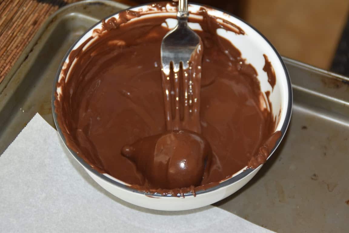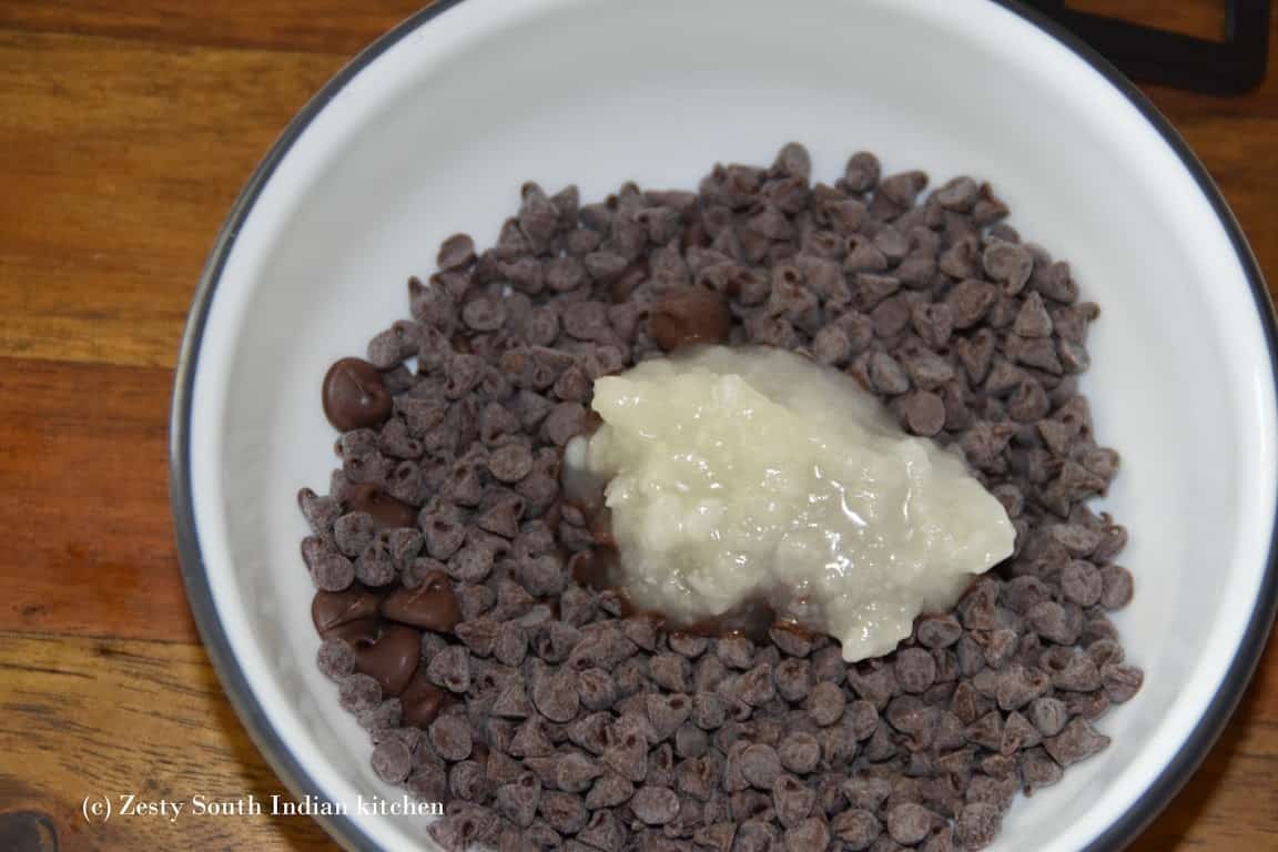 Put the chocolate chips and coconut oil in a microwave-safe bowl and microwave in 30-second intervals, stirring, until melted. Let cool slightly.