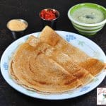Serve the ready Dosa with side dishes like Coconut chutney, Idly milagai podi and sambar.