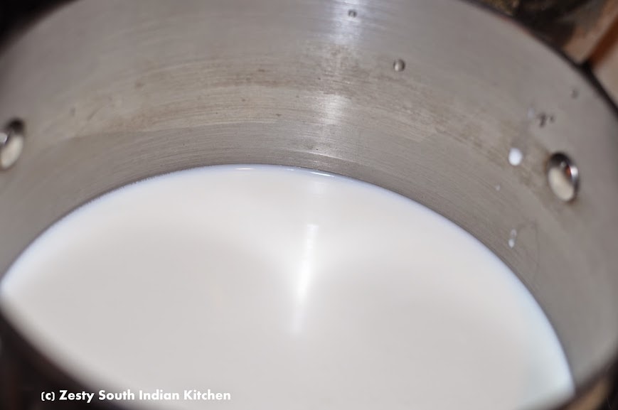 In a heavy sauce pan, bring milk and cream boil for 6 minutes over moderate heat,