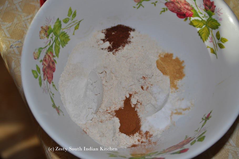 In a small bowl, whisk, all purpose flour, whole wheat pastry flour, ground ginger, cinnamon, baking soda, cardamom, salt and cloves.