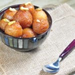 Tips: Always remember two things while using rose water, do not add it while syrup is bubbling hot or on fire, and be particular about the quantity mentioned in every recipe, since even few drops of excess rosewater could lend a bitter taste to the final product. In order to prevent center of jamun from not cooking, some prefer to place an unsalted pistachio in the center of every Gulab jamun while making balls, that way the core of Gulab jamun is not left uncooked. If there are cracks in the balls before frying it will burst open while frying, in that case adding a bit of corn flour will surely help.