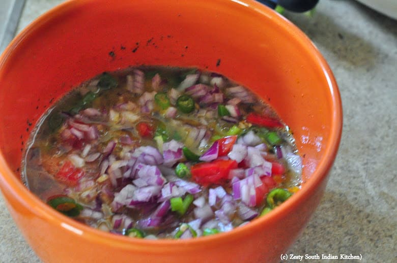 In a bowl add 4 egg whites and 2 whole egg, chili powder, ground pepper, turmeric powder and salt and lightly beat together.