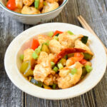 Prepare the sauce in the large mixing bowl. Whisk together the soy sauce/ tamari, garlic, ginger, honey, rice wine vinegar, ginger, garlic, and lime juice. Taste test and adjust as needed, adding more chili-paste for heat, honey for sweetness, or garlic or ginger for zing.