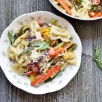 Delicious Pasta Primavera with roasted vegetables. Simple pasta dinner with packed with veggies , herbs and spices, no cream or sauce but with bursting flavors.
