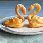 Using a ¼” (6 mm) tip on a pastry bag, pipe out about 11 swan heads. You’re aiming for something between a numeral 2 and a question mark, with a little beak if you’re skilled and/or lucky.