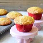 In a small bowl, combine the 1 tablespoon sparkling sugar and rest of lime zest and mix well. Sprinkle the lime zest sugar mixture over the tops of the batter filled cups.