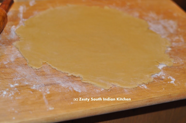 When you are ready for baking preheat the oven 375F. Roll out the crust on a lightly floured surface to 12 - 13 inches in diameter.