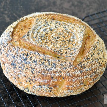 Delicious crispy sourodugh bread with semonlina and coved with seasme seeds, goes well as great toast .