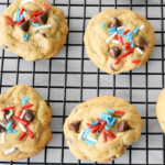 Soft chocolate chip cookies made with instant pudding mix and chocolatechips and sprinkles.