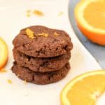 In a small bowl, combine flax meal and ¼ cup plus 2 tablespoon cold water. Chill for about 15 minutes. In a small bowl, whisk together flour, cocoa powder, baking soda, orange zest and salt.